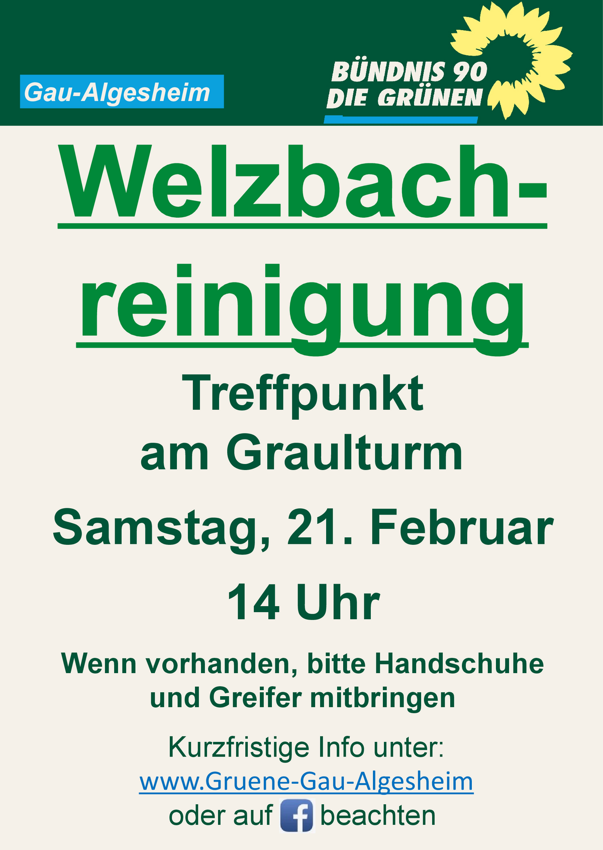 gemeinsam mit den GRÜNEN den Welzbach im Ortsbereich Gau-Algesheim von Unrat zu befreien.