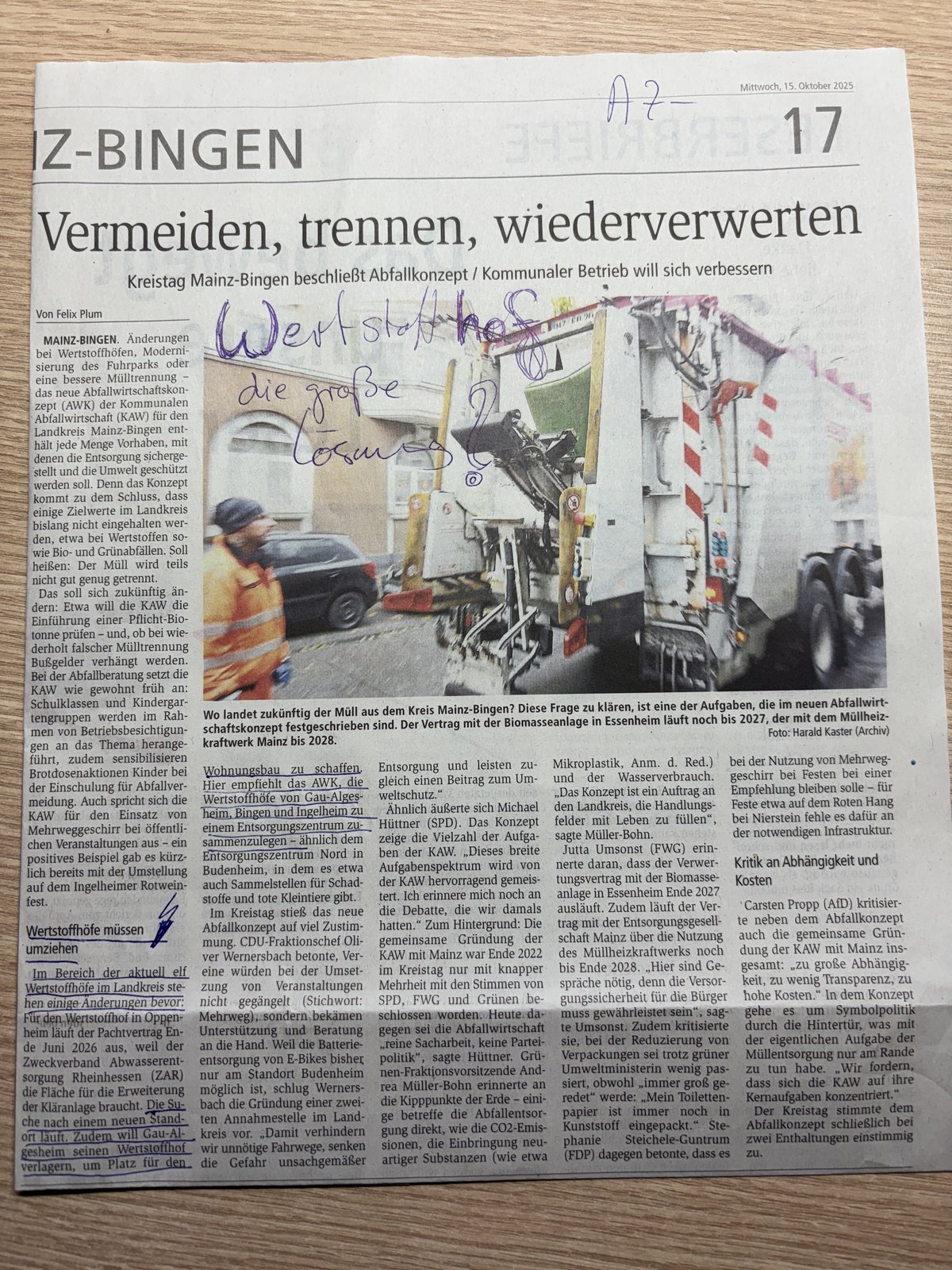AZ Artikel vom 16. Oktober 25: Abfallkonzept im Kreis